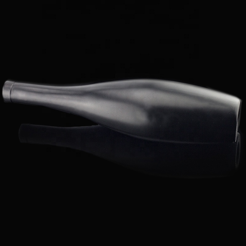 700ml Competitive Price Unique Shaped Matt Black Color Liquor Spirits Glass bottle For Vodka Whiskey Gin Brandy With Cork Top |