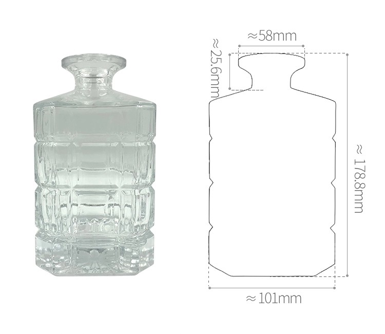750ml Clear Square Whiskey Wine Glass Bottle With Cork |