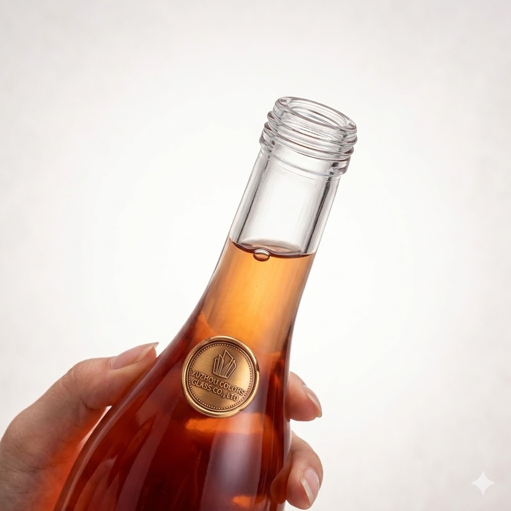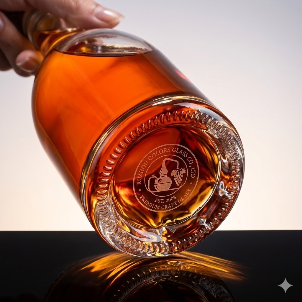 The bottle supports cork closures and multiple decoration techniques, making it ideal for custom branding and premium liquor packaging.