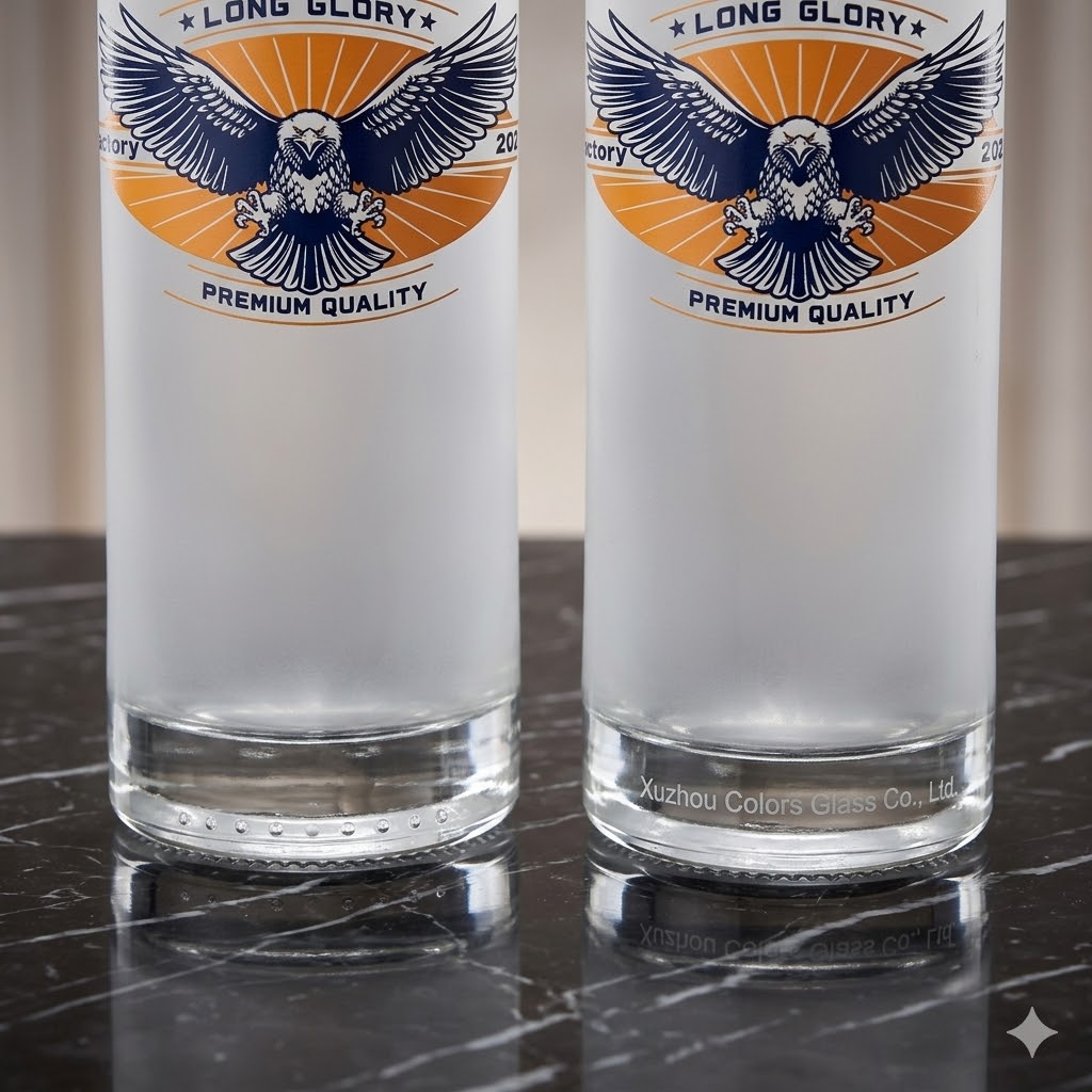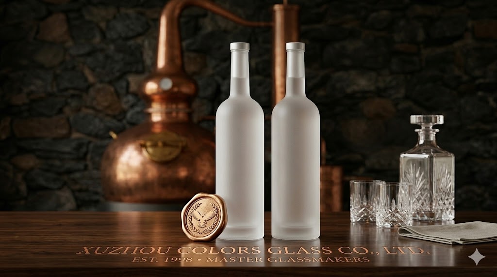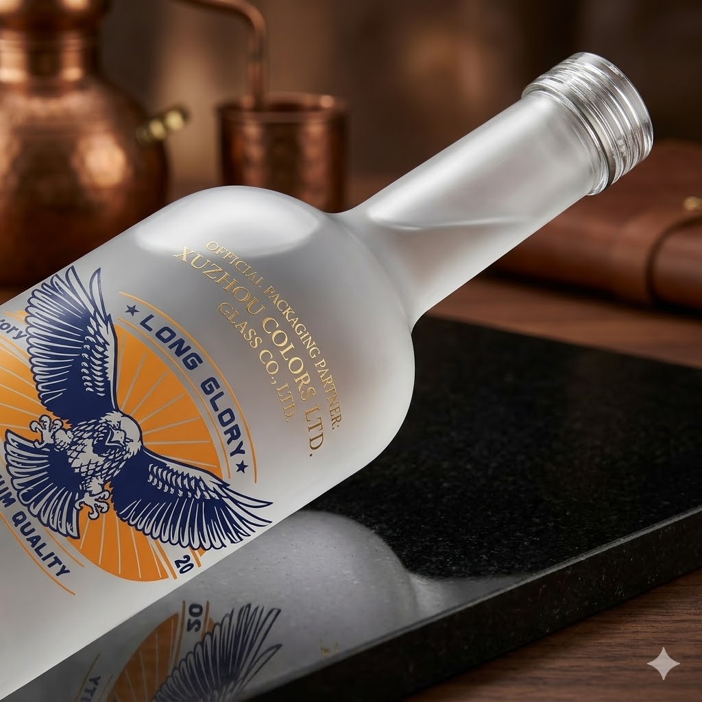 The bottle features a cork stopper closure, ensuring excellent sealing performance to preserve the aroma and quality of the liquor. It also supports advanced decoration techniques such as frosting and spray color, helping brands create distinctive and eye-catching packaging.