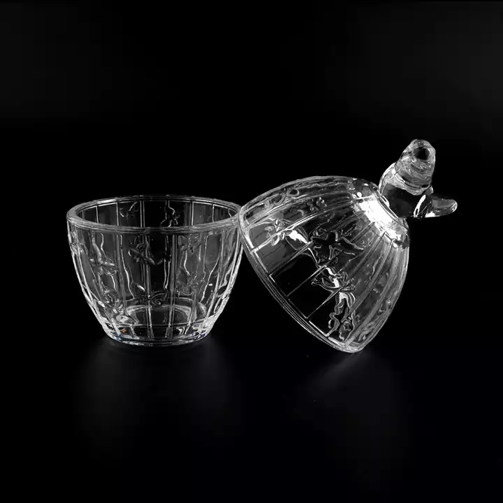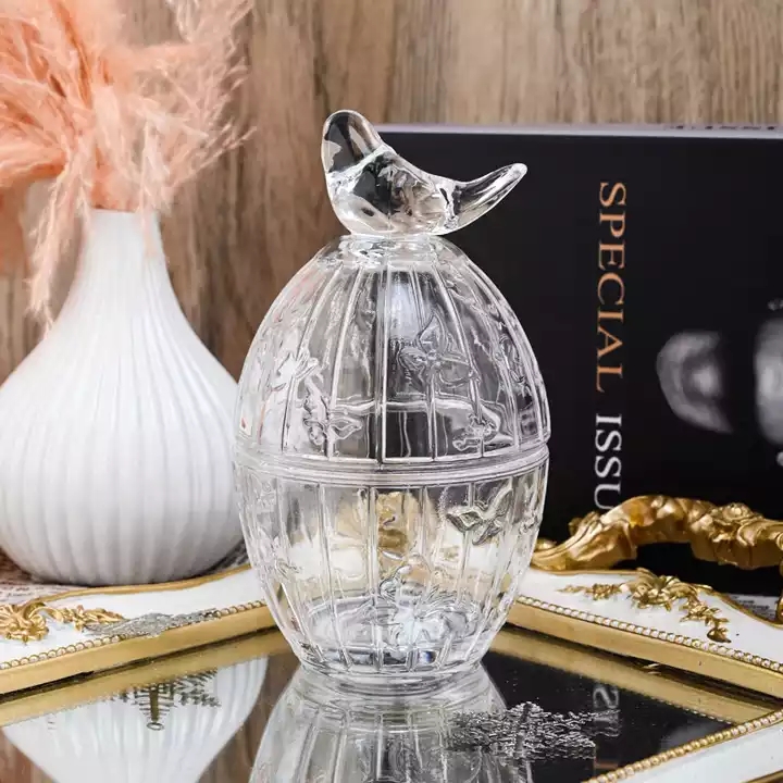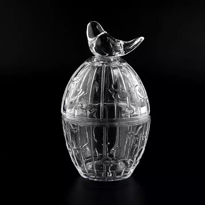 7oz ball shape glass candle bowl with bird lid |