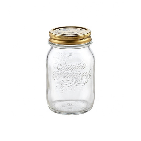 8OZ Embossed Food Glass Jar Italian Glass Mason Jar Bulk with Metal LId |