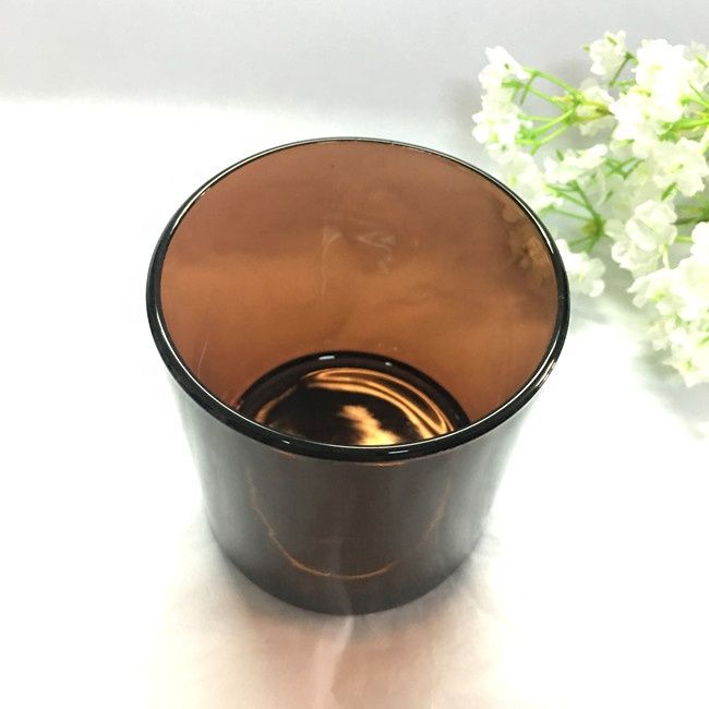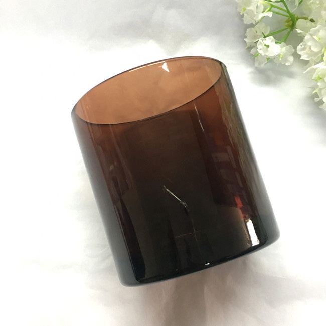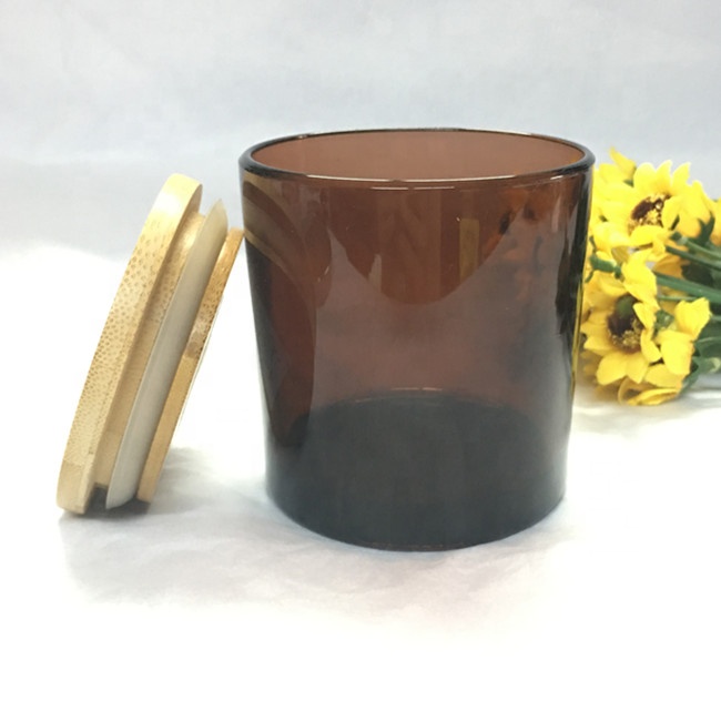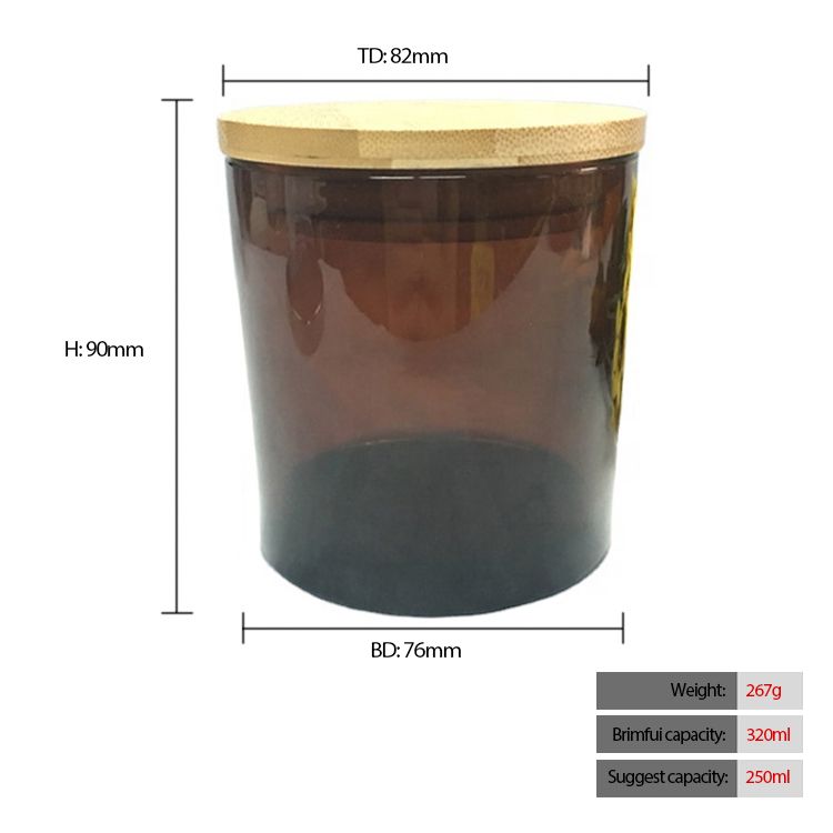 9oz transparent color amber glass candle jar with wooden lid custom candle holders in bulk custom LOGO size colour |
