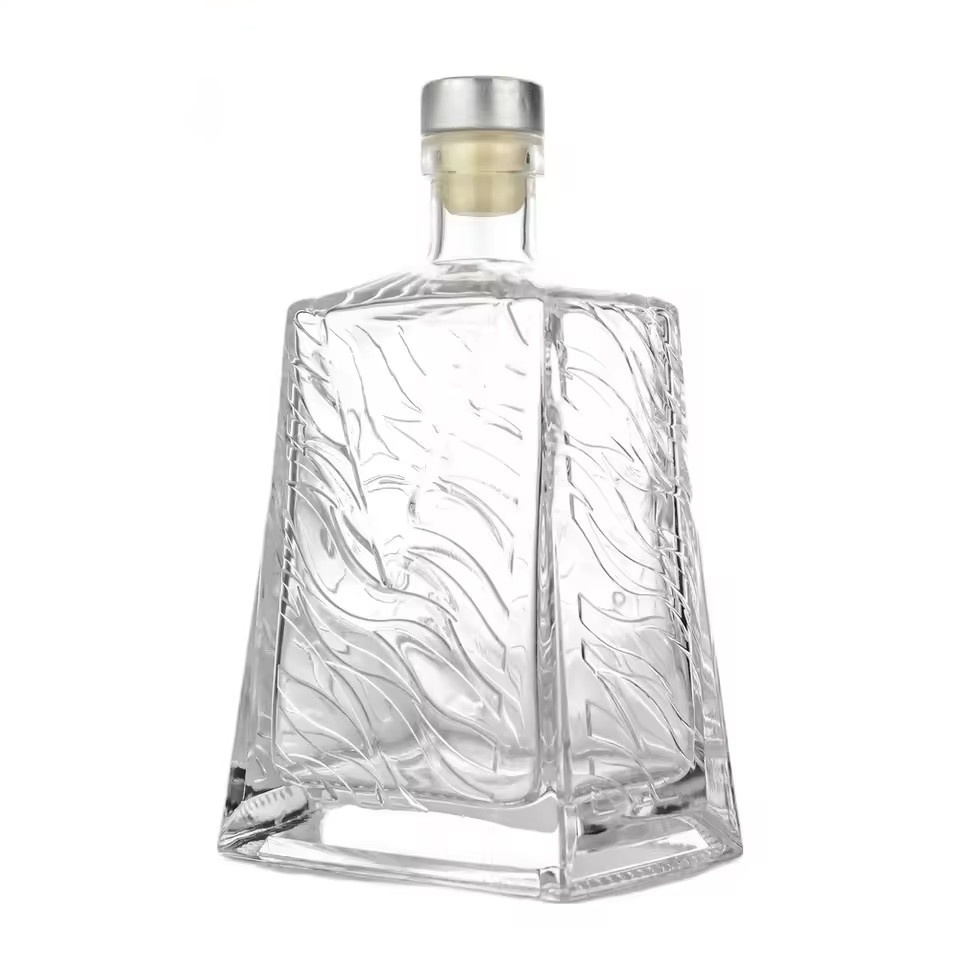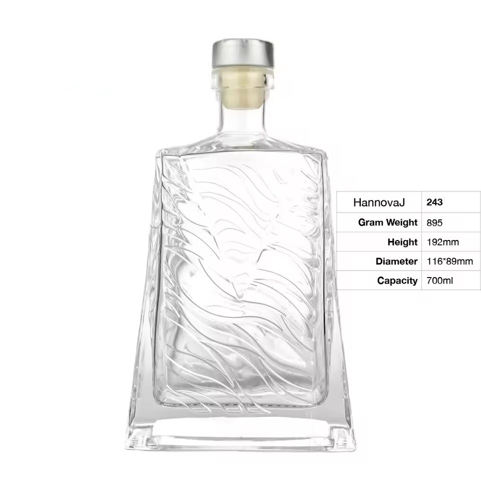 | Product: | Creative Design Engraved Packaging Wholesale Spirit Glass Alcohol Container 700ml Rectangular Vodka Glass Bottle With Cork |