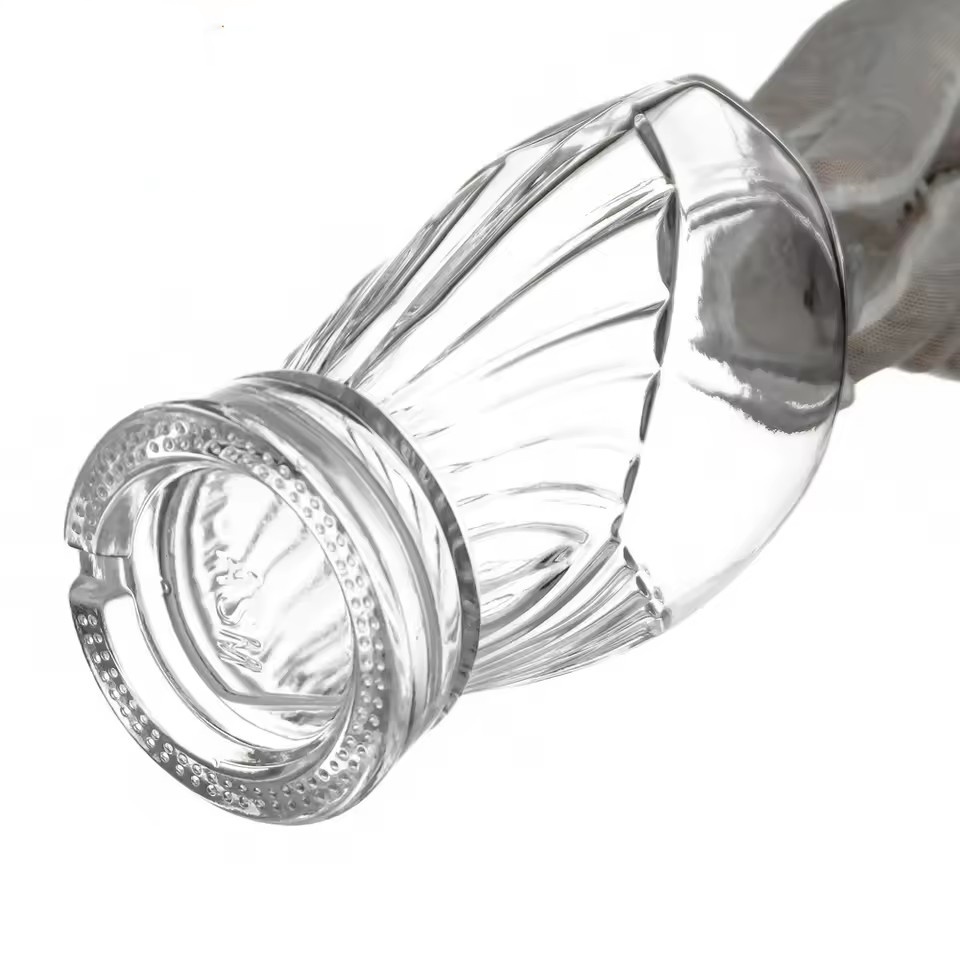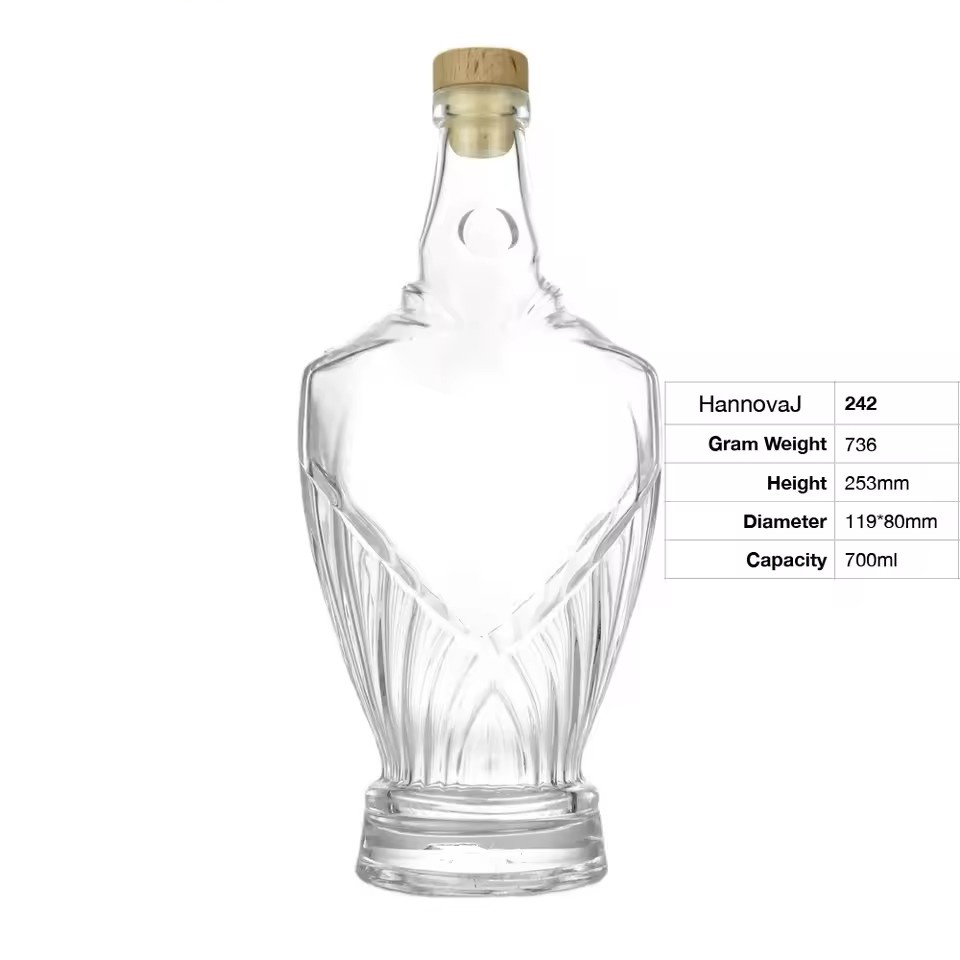 | Product: | Creative Design Engraved Packaging Wholesale Spirit Glass Alcohol Container for Distilled Beverages With Cork |
