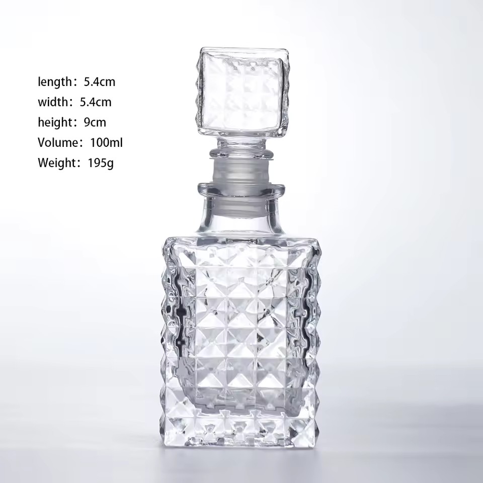 | Product: | Creative Square 100ml Lead-Free Crystal Glass Wine Bottle for Bar & Whiskey Packaging Screen Printed Surface for Tequila |
