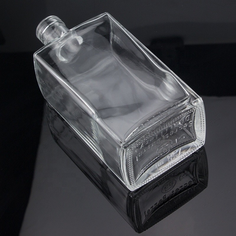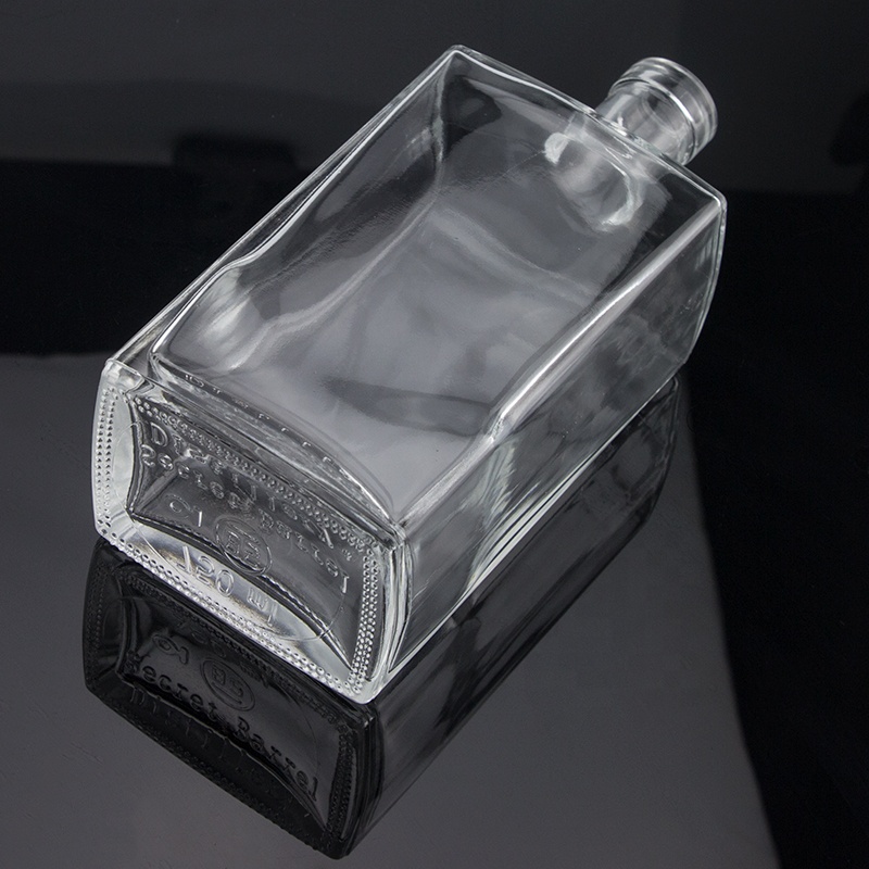 Custom Bottom Embossed Design Square Shape Cork End 750ml Vodka Glass Bottle |