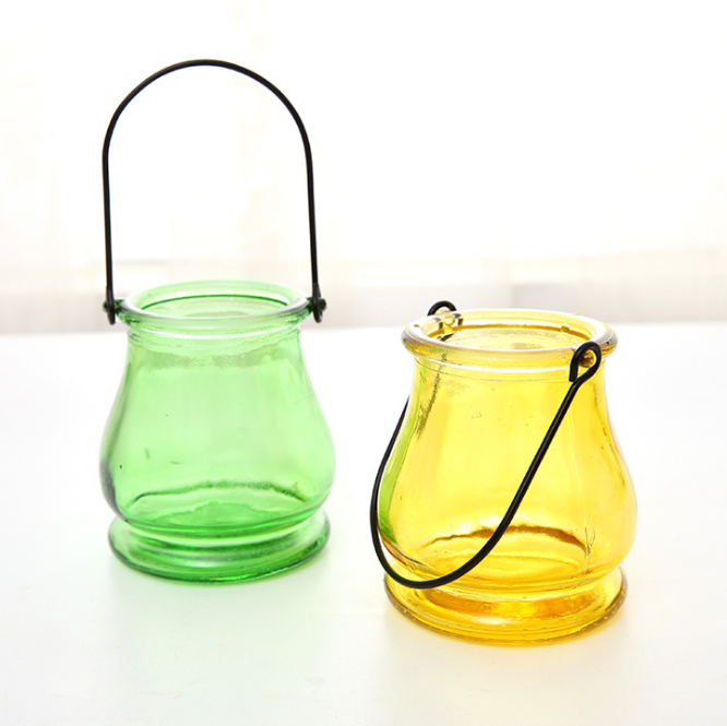 | Product | Custom Colored Hanging Glass Candle Holder Tealight With Handle In Bulk |