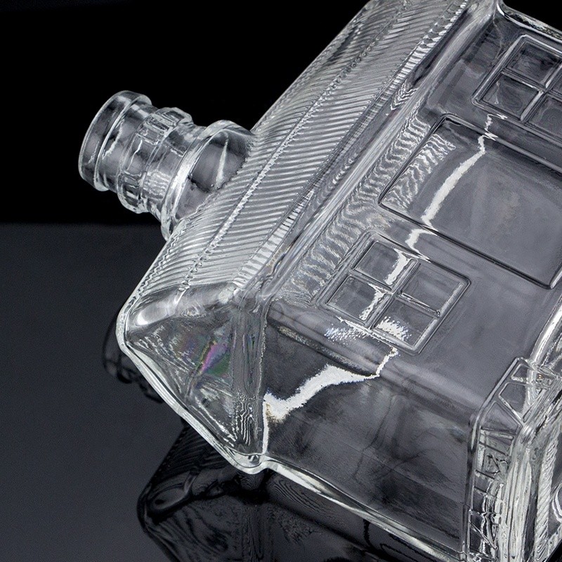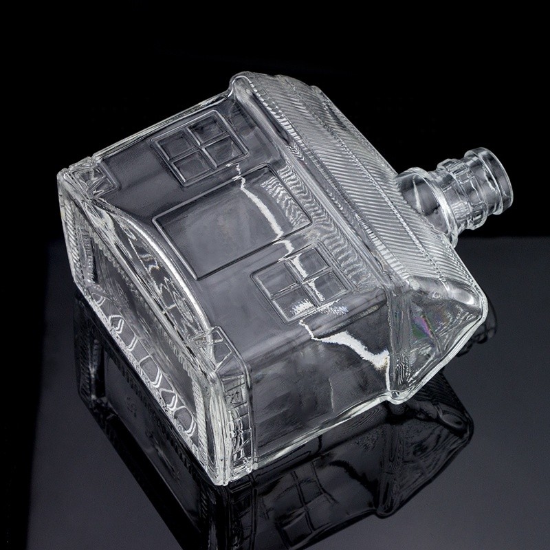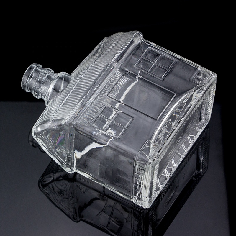 Custom Embossed Unique Design House Shape 500ml Vodka Glass Bottle Guala Top |