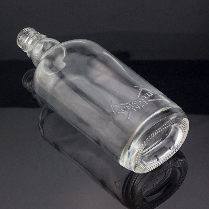 Custom Thick Bottom 750ml Brandy Glass Bottle For Guala Top With Embossed Logo |