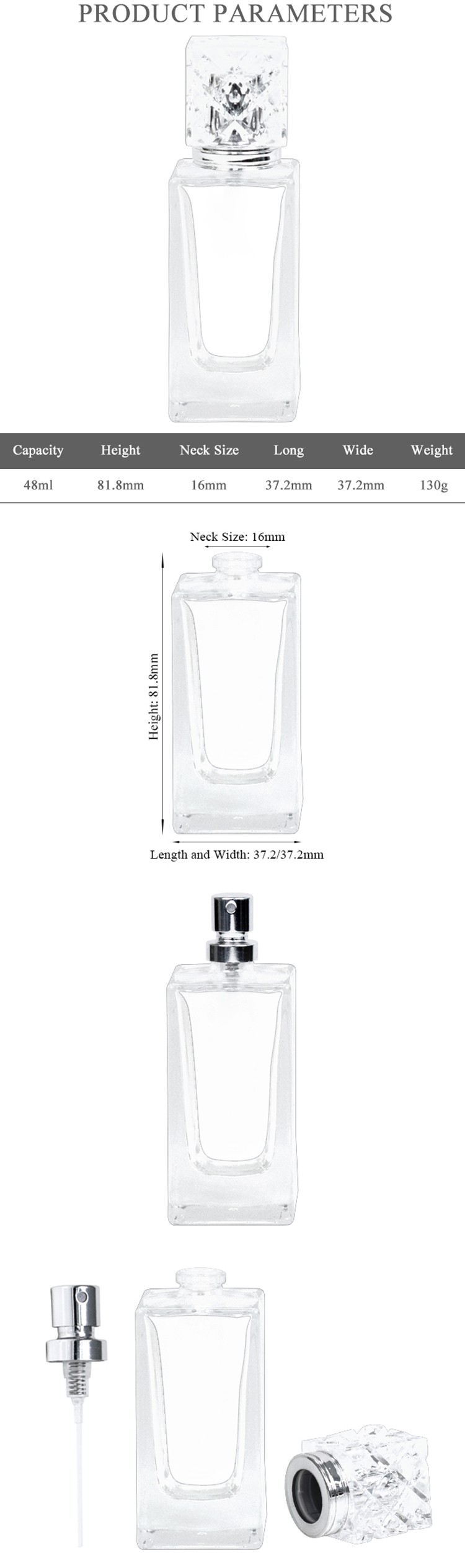 | Product: | Custom Unique High Quality Transparent 50ml Atomizer Spray Empty Rectangular Glass Perfumes Bottles |