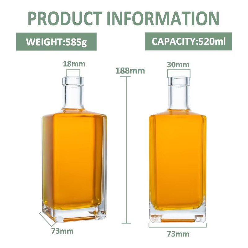 | Product: | Customizable Square Liquor Bottle 500ml Rectangle Rum Vodka Gin Glass Bottle for Spirits |