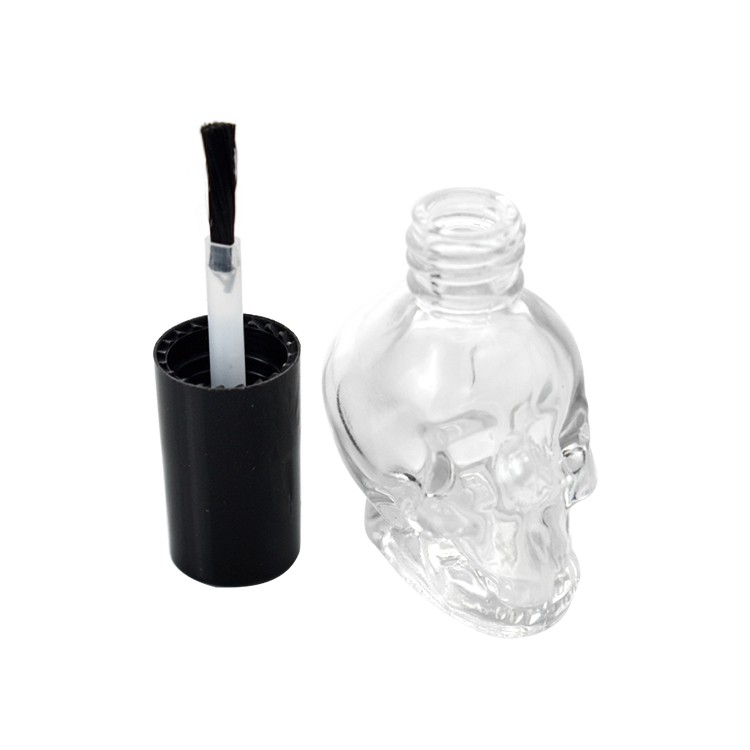 Customized 8ml Unique Skull Shape Print Gel Glass Nail Polish Bottle Brush Cap For Cosmetic |