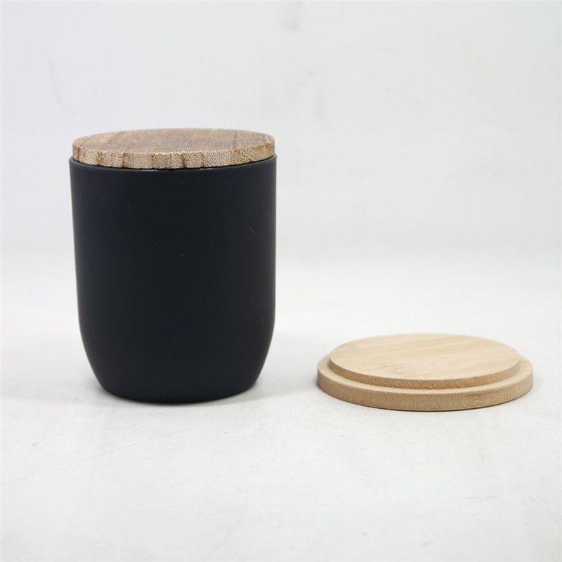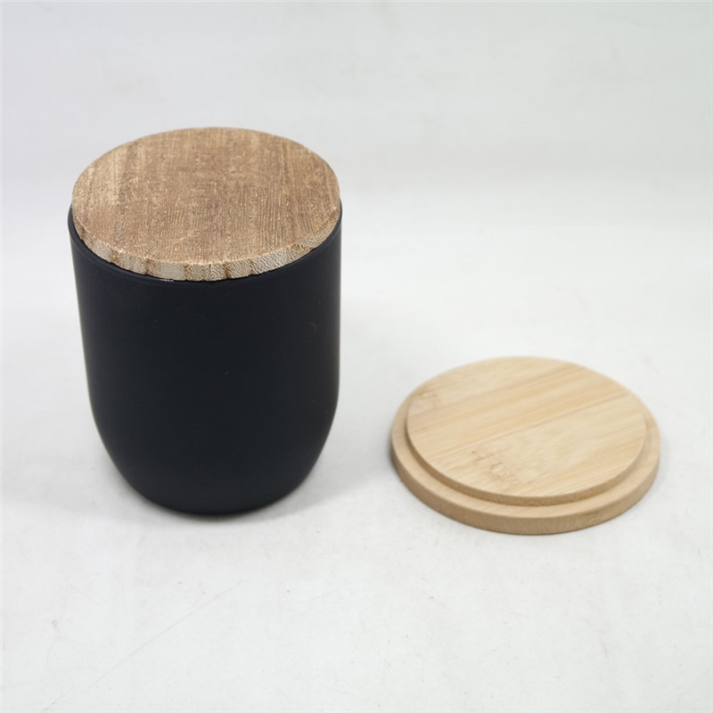 | Product | Customized various of Matte black glass candle container jars and thin bamboo lids |