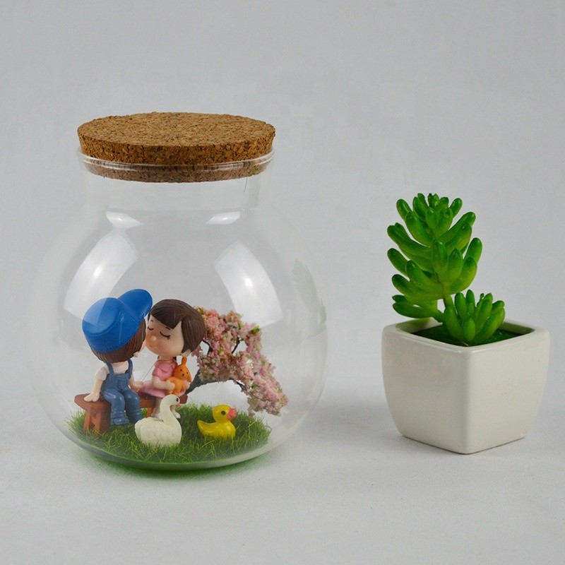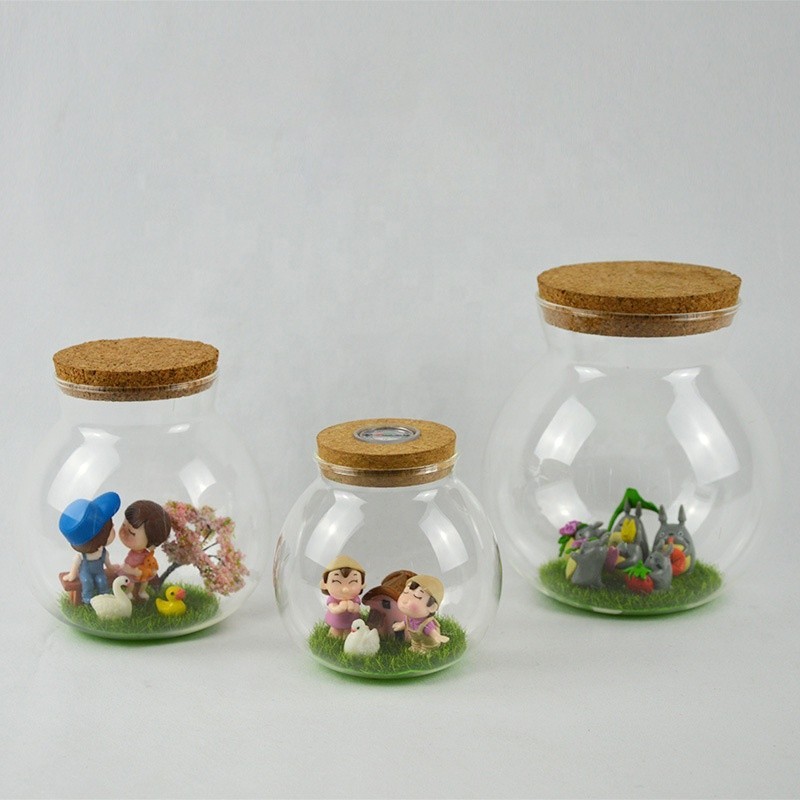 DIY borosilicate Spherical glass jar, decorative glass storage jar with cork |