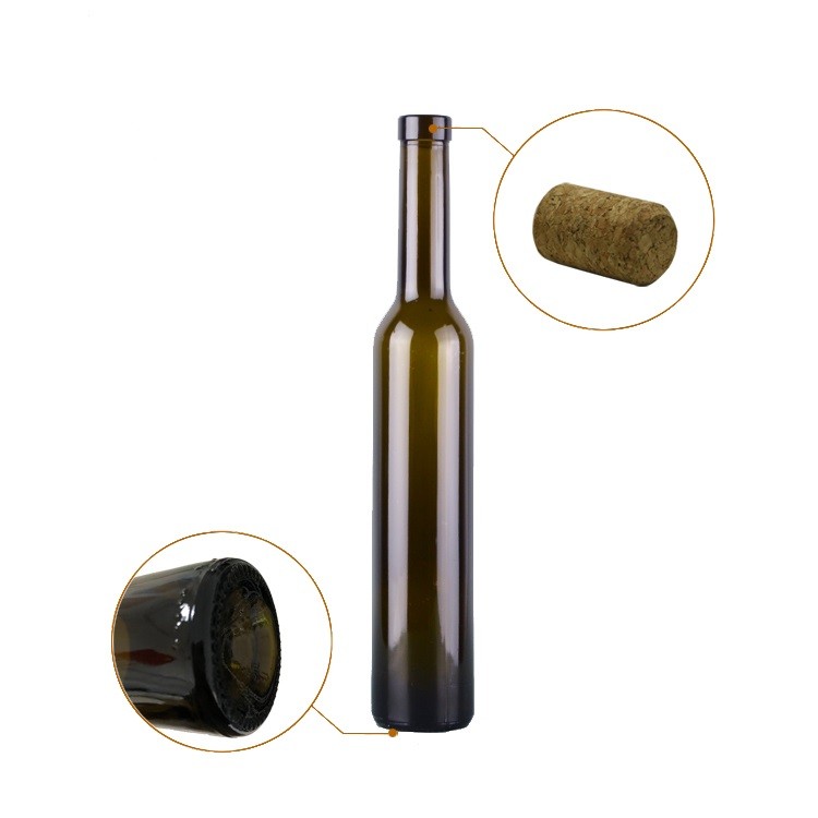 Delicate practical stocked wholesale empty 375ml antique green glass bottle for ice wine |