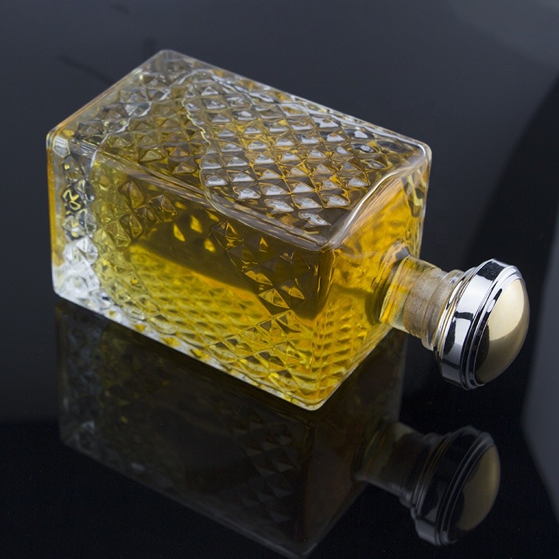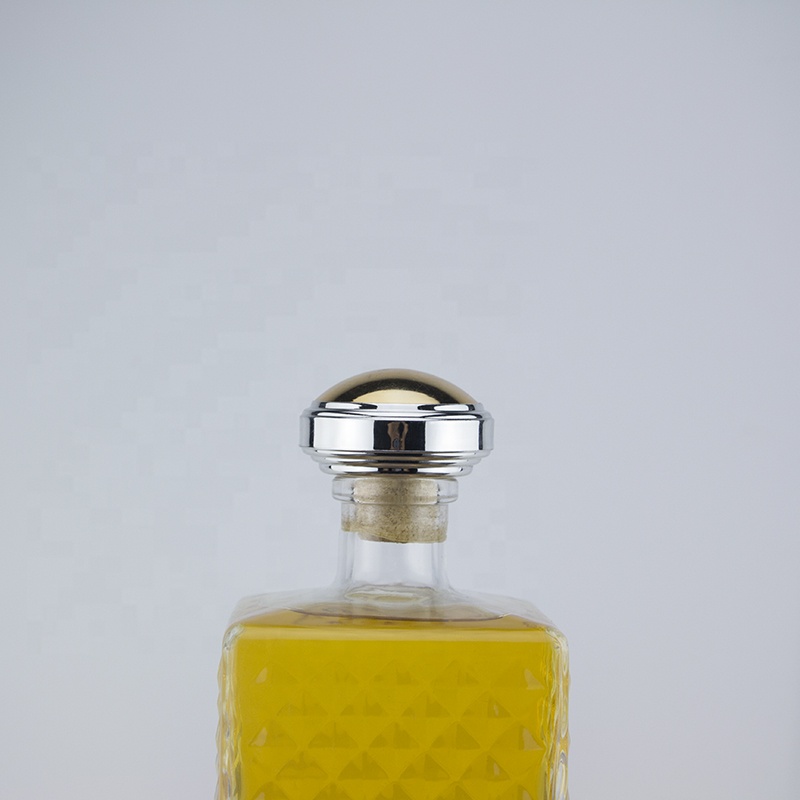 Deluxe Square Embossing Shout Neck Super Flint Glass Bottle 70 Cl Rum Uv Top Wood Cork Bottle |