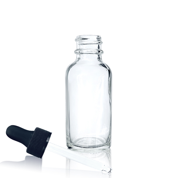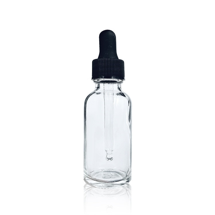 | Product Name : | Durable 1 oz 30ml Clear Boston Round Glass Bottles With Black Cap |