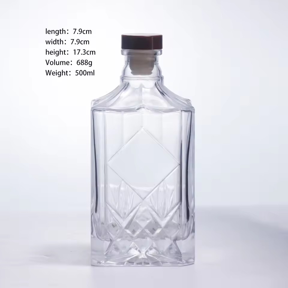 | Product: | Elegant and High-quality, Customizable square 500ml Whiskey Vodka Brandy Glass Bottle with Cork for Luxurious Dinner Gatherings |