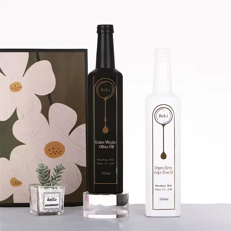 Empty Square Matte Black White Glass Bottle 500ml Olive Oil Gin Liquor Liquid Container Bottle With Cap Screen Printing |