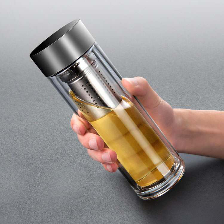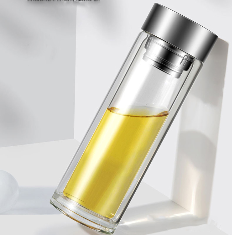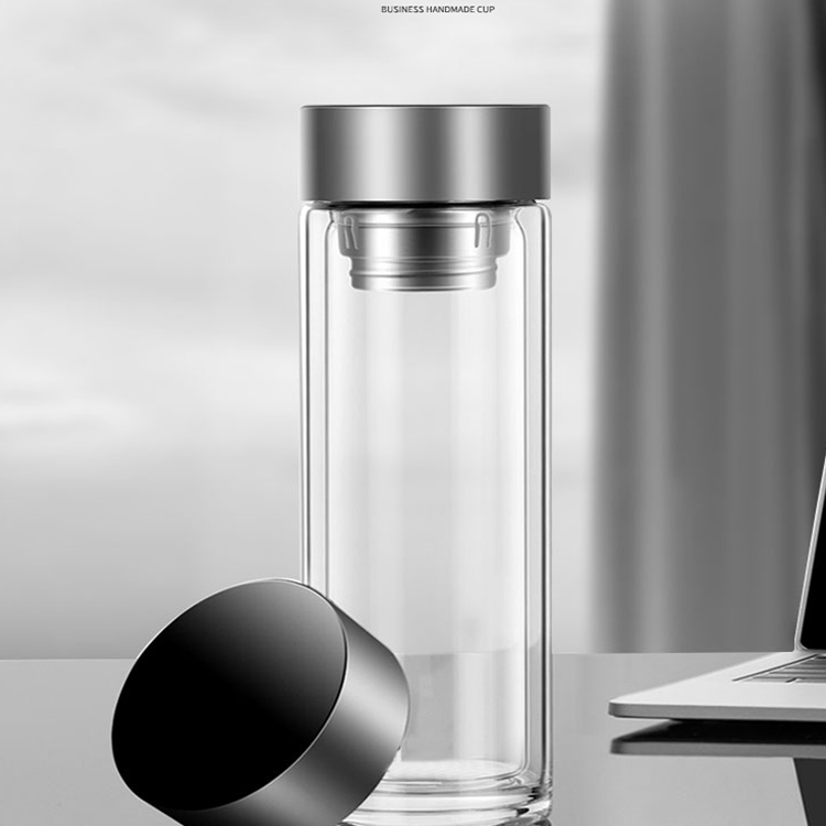 Extremely Simple Man High Grade Thick Insulation Gift Customized process Portable Double Glass Crystal Water Tea Cup |