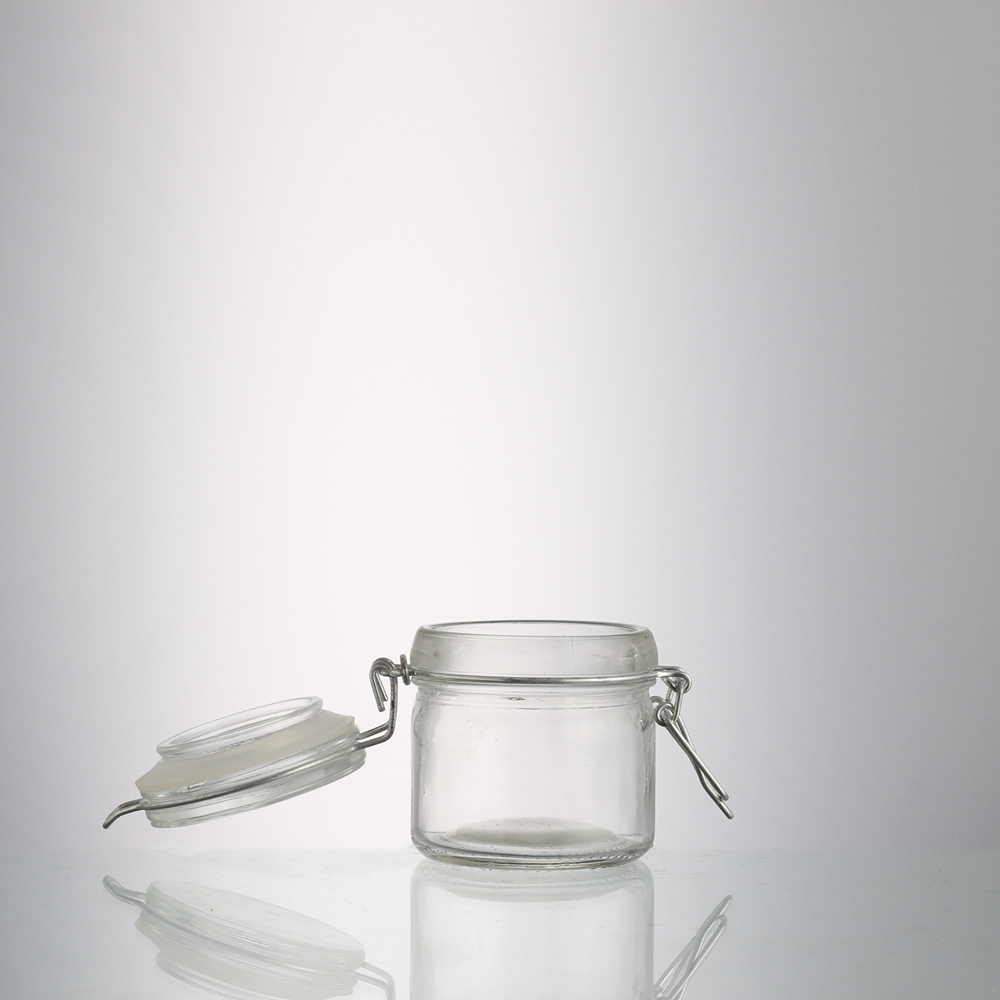 Factory Price clear small Glass Jar 100 ml pickle Storage Jar Bottle With Flip Top Lid |