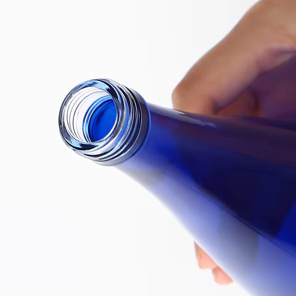 Factory Produce 330ml 500ml Custom Blue Color Drop Shape Empty Super Flint Glass Water Soda Beverage Glass Bottle with Lid |