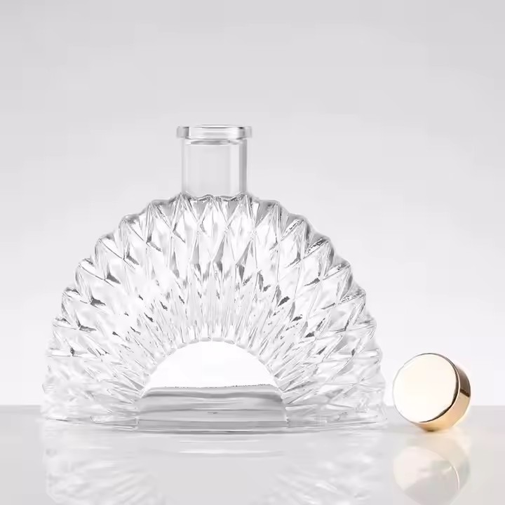 | Product: | Factory custom 500ml clear fanshaped shape glass bottle with cork |
