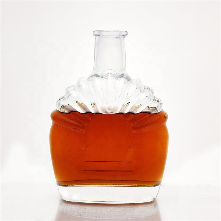 Flat Embossed Liquor Glass Whiskey Bottle 700ml Cognac Botellas Licor Clear Fancy 750ml Brandy Bottle With Cork |