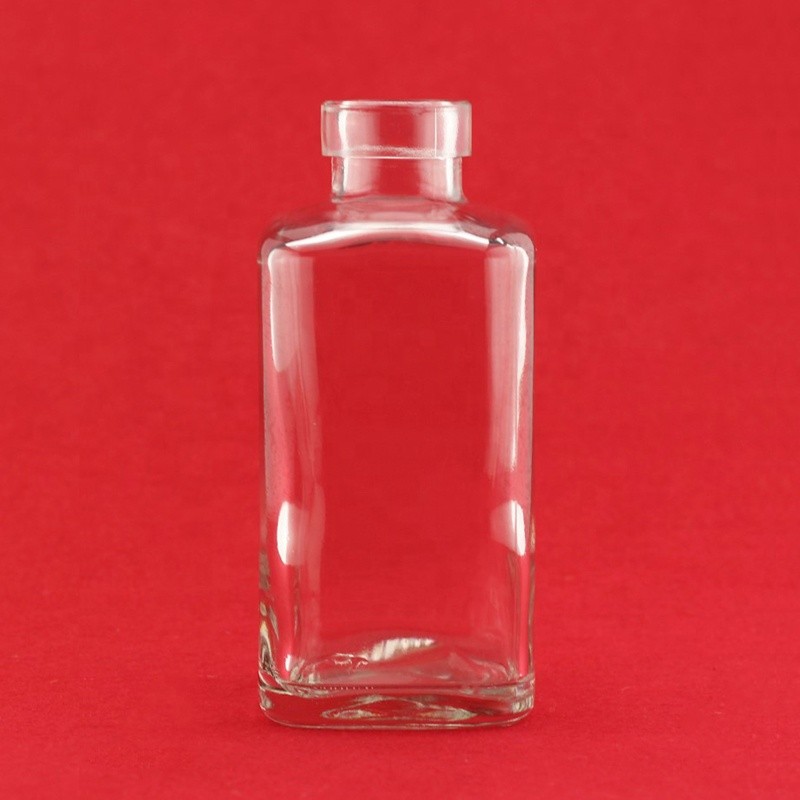 Flat Shape 250ML Empty Glass Vodka Bottle Small Glass Bottle For Whiskey Glass Liquor Bottle With Cork |