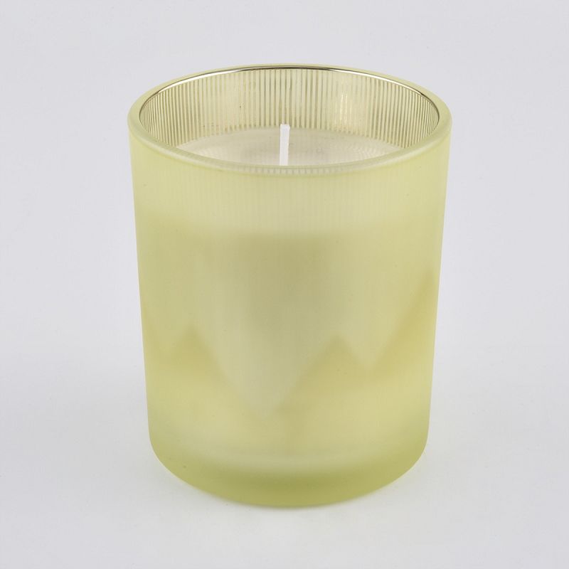 | Product: | Frosted glass candle jars with spraying and electroplating color |