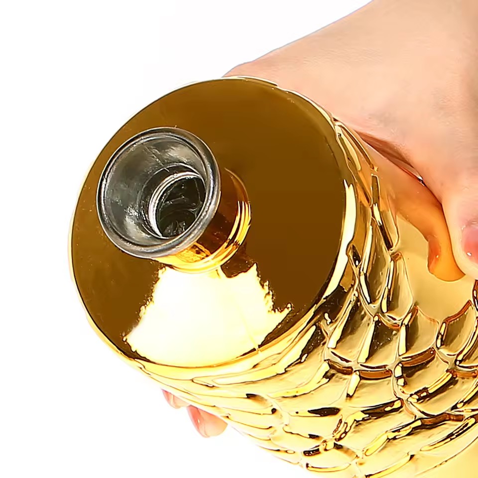 | Product: | Gilded Luxury Embossed Fish-Scale Patterns Customized Golden Round Slim Empty 500ml 750ml Glass Spirits Bottle |