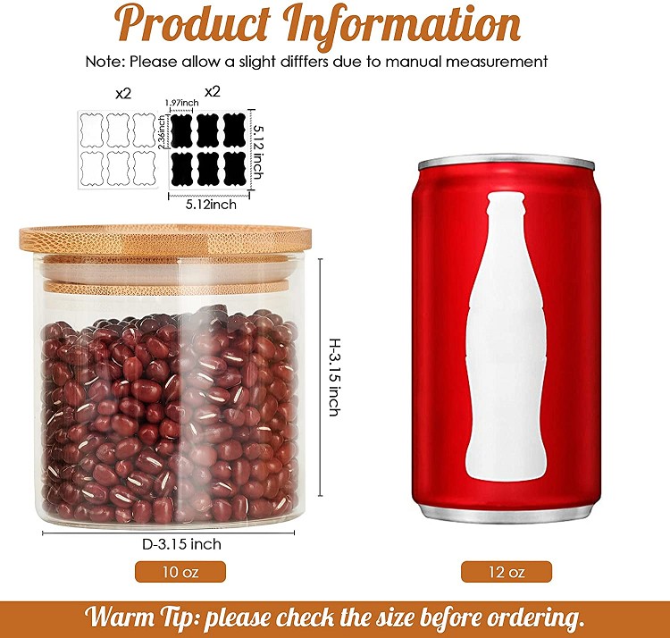 | Product: | Glass Jars with Lids 10 oz Spice Jars Set of 12 Small Glass Canisters with Bamboo Airtight Lids |