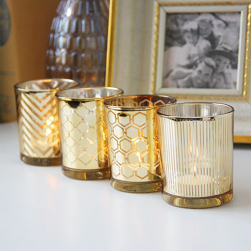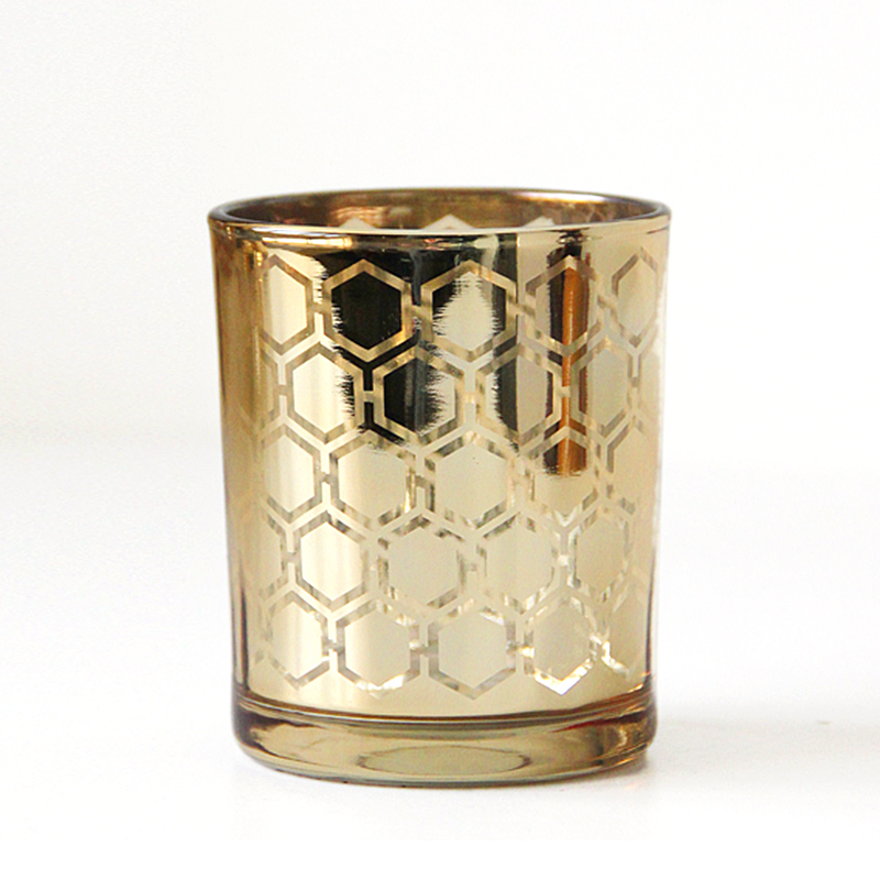 | Product | Gold 315ml 10oz Laser Engraving Geometric Pattern Electroplate Glass Candle Holder |