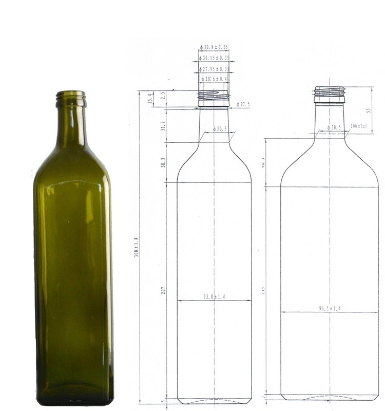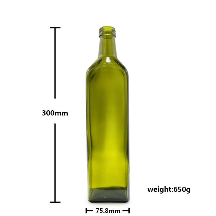 Green empty square shape glass olive oil bottle of 1000ml |