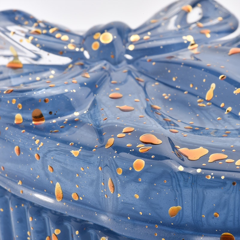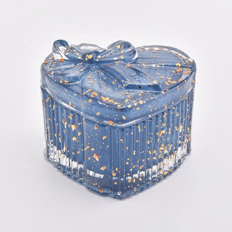 | Product: | Heart shape custom blue crystal empty glass candle jar with lid |