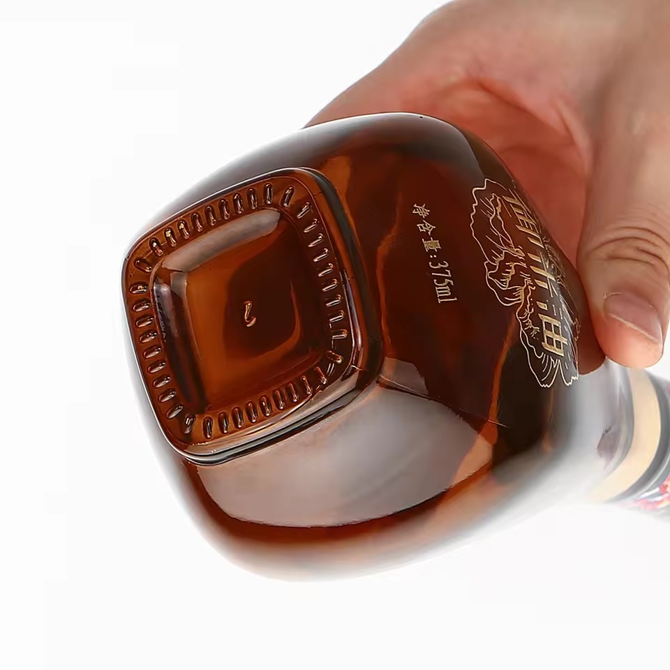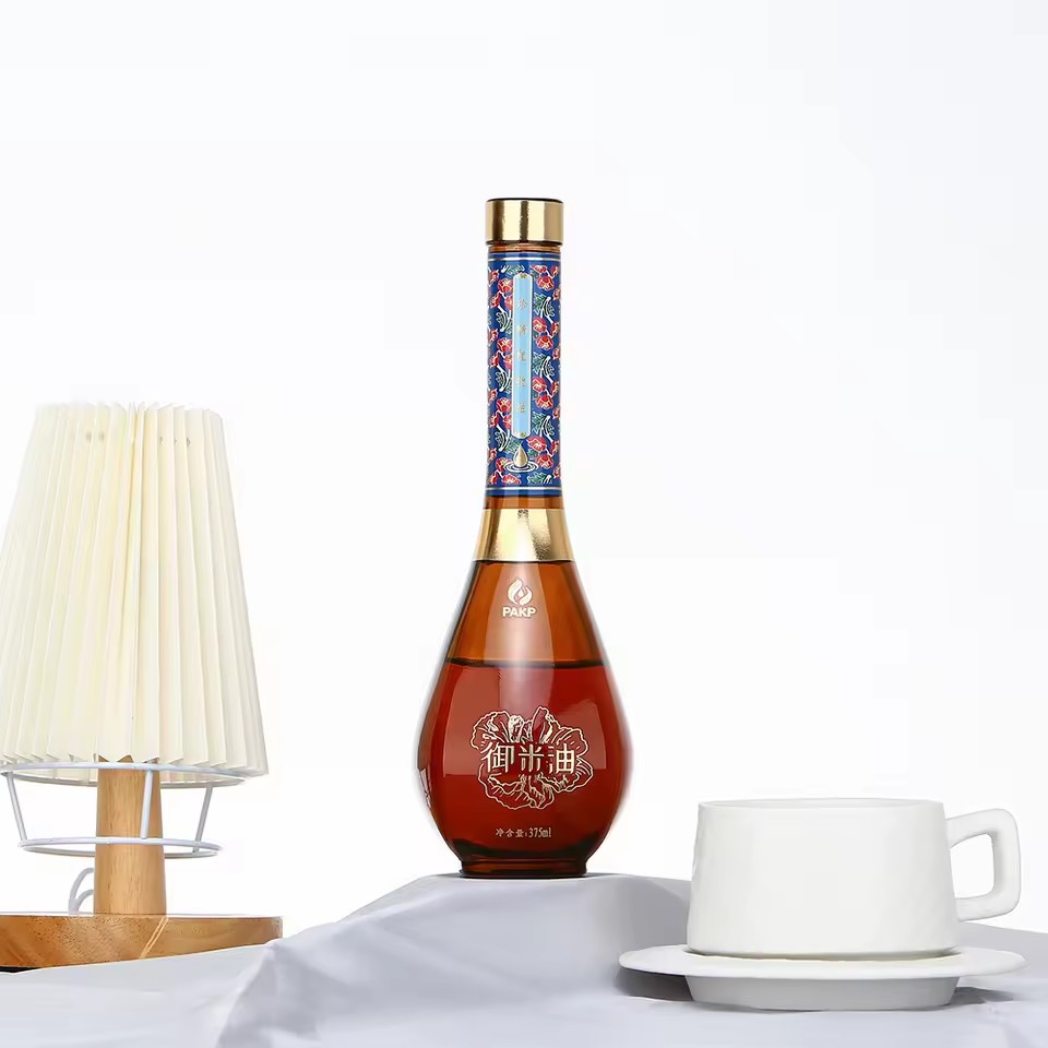 High-End Brown Transparent Long Neck Small Bottle With Luxury Customized Printing 330ml 500ml 750ml Glass Oil Bottle |