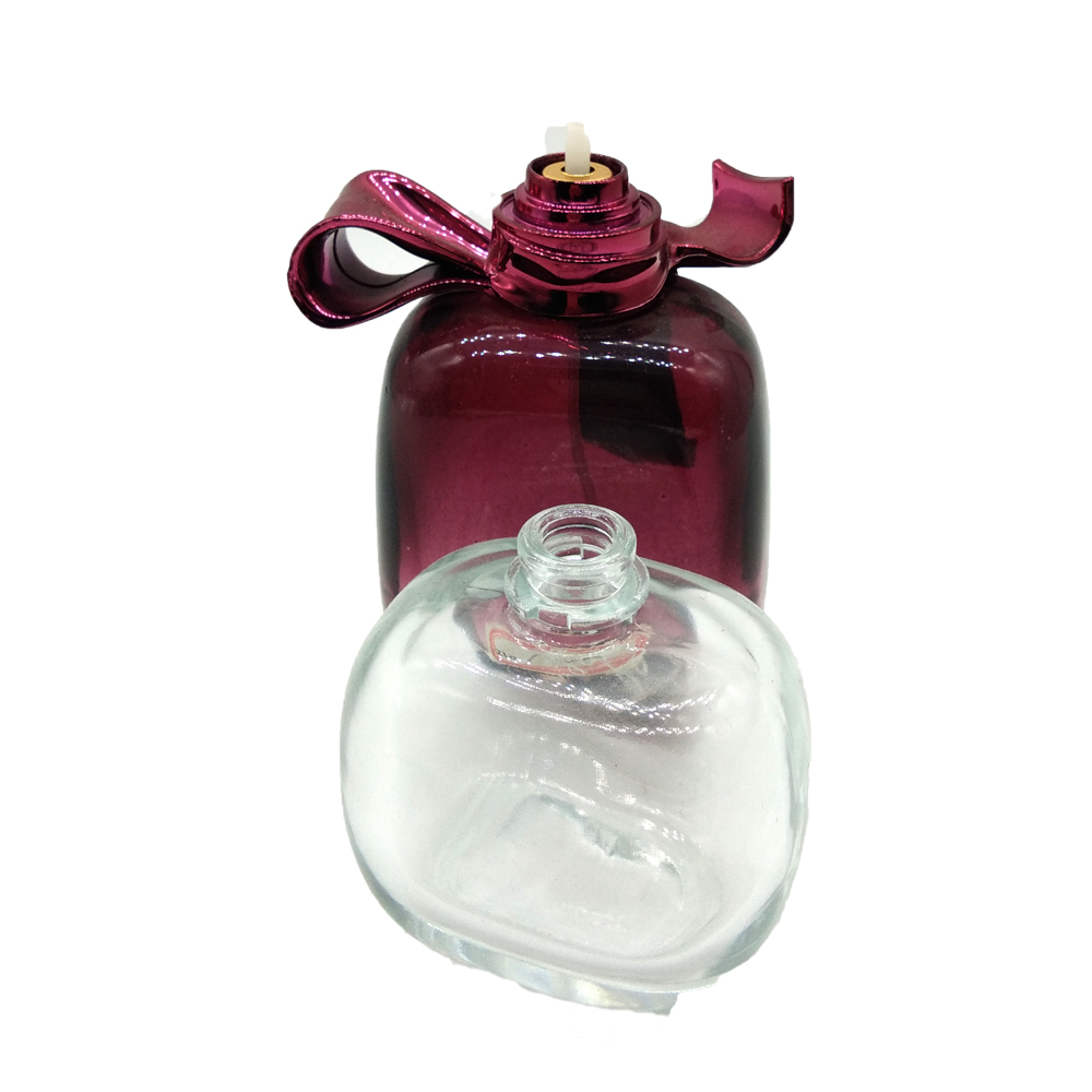 High quality 50 ml 100 ml empty woman perfume frosted glass bottle with bow cover |