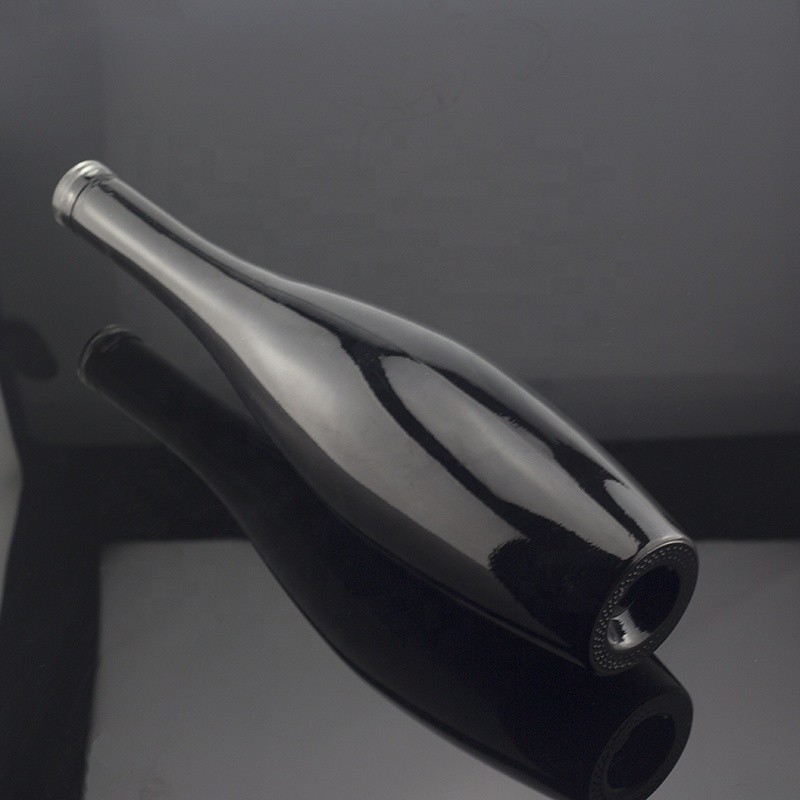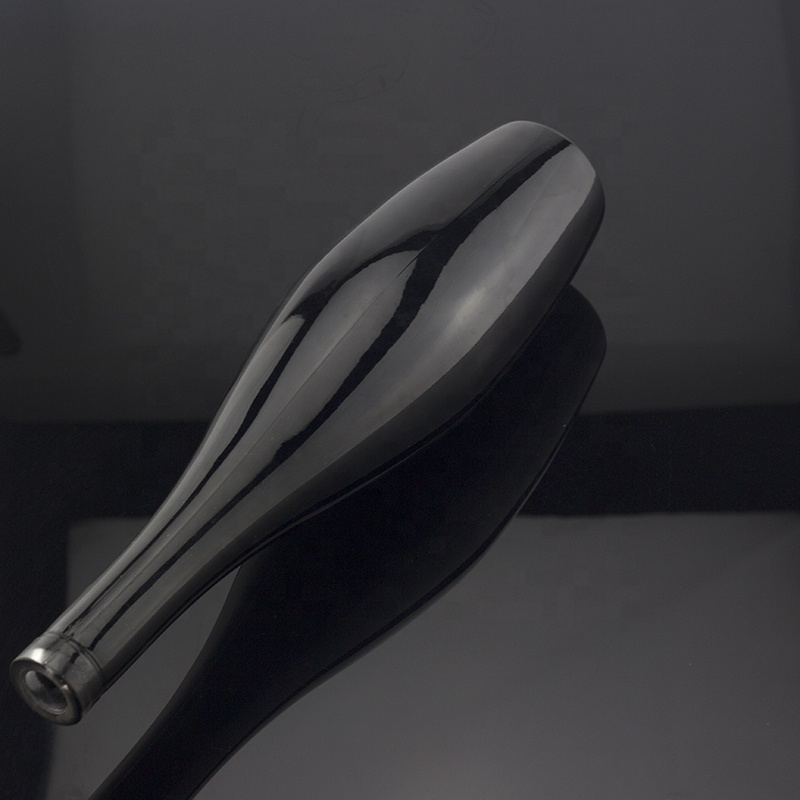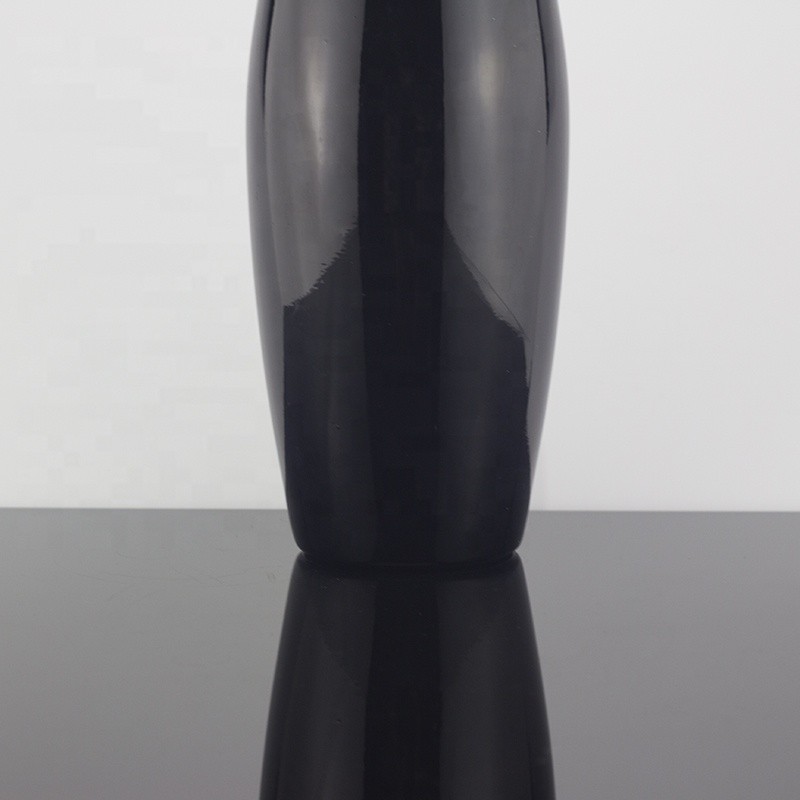 Hot Sale Bowling Shape Black Color Matte Glass Bottle 70 Cl Liquor Cork Stopper Bottle |