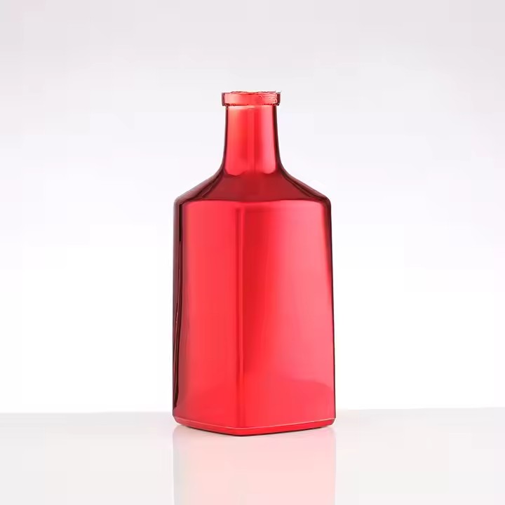 Latest Design red color square bottle custom logo sample luxury 700ml 750ml 200ml empty glass bottle for liquor |