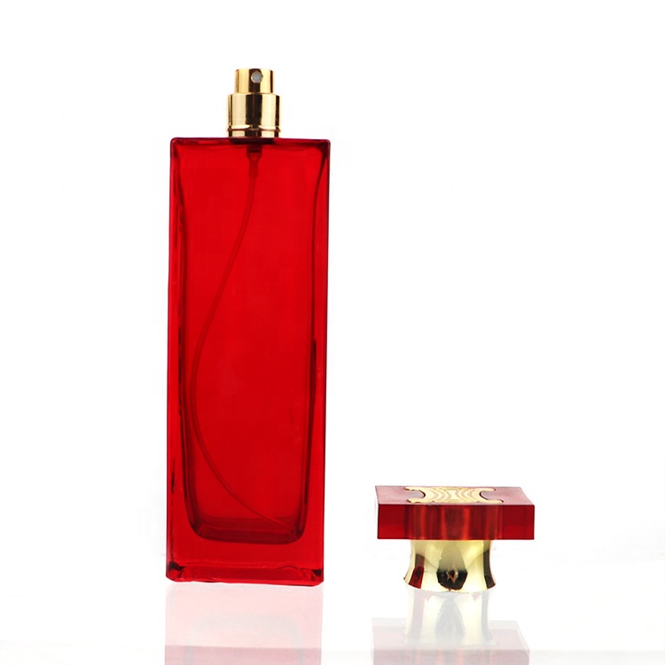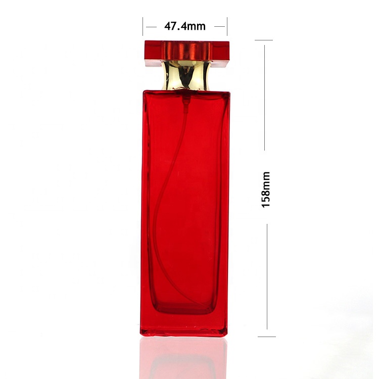 Luxury 100ml Square Glass Perfume Spray Bottle Colored In Red |