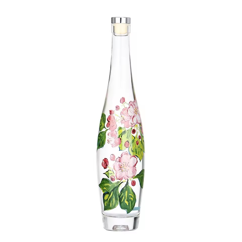 Luxury Flower Label Glass Water Bottle 330ml 500ml 750ml 1L Glass Water Bottle Unique Shape Glass Bottles for Water Juice |
