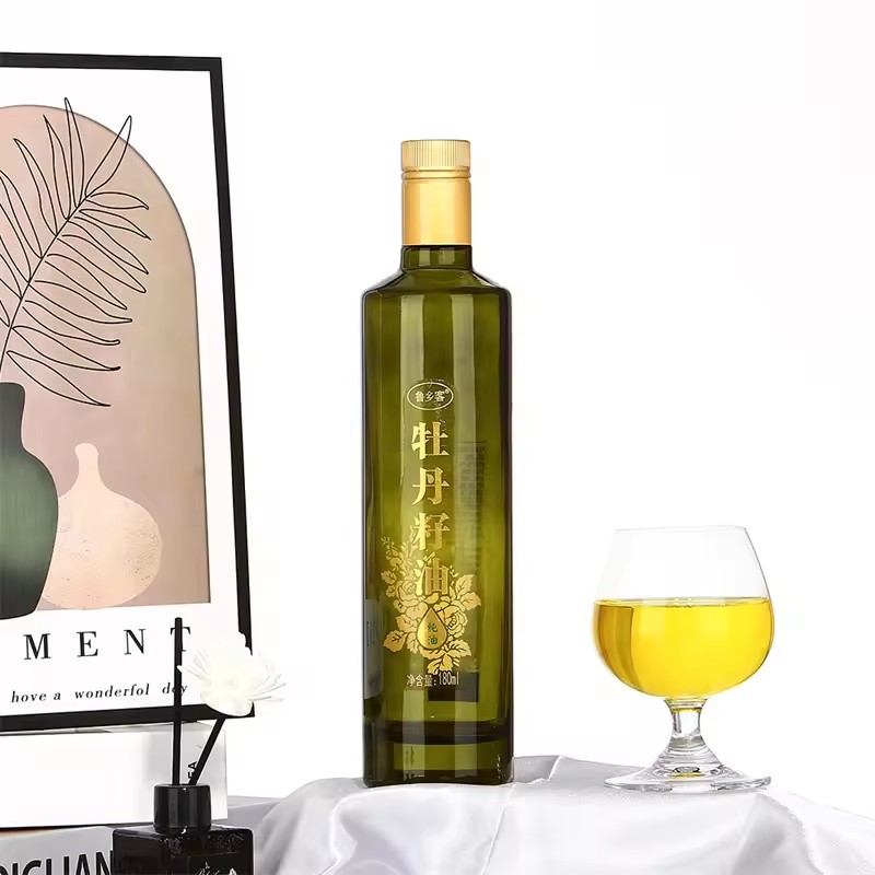Luxury Packaging Custom Translucent 550ml Volume Green Amber Round Sharp Super Crystal White Food Grade Olive Oil Glass Bottles |