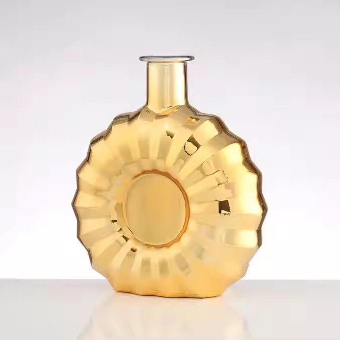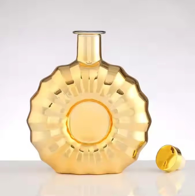 | Product: | Luxury Round Empty Brandy Glass Liquor Wine Bottle 750ml Electroplated Golden Vodka Wine Glass Bottle with Lids |