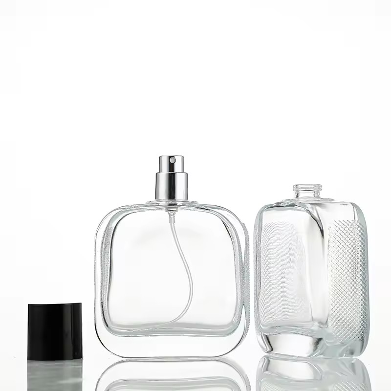 | Product: | Luxury Saudi Arabia Flat Embossment Black Cap 100ml Bottle Wholesale Transparent Glass Perfume Bottle With Pump Sprayer |
