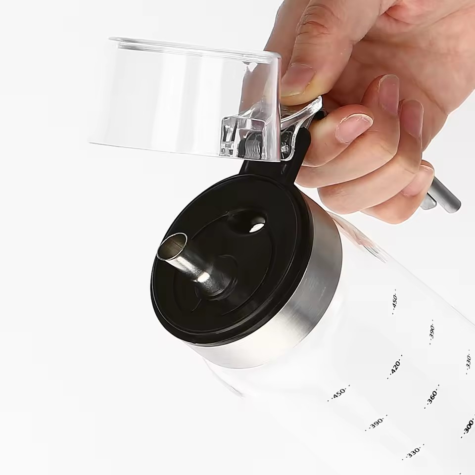 New Design Transparent Portable Domestic Oil-Dripping Bottle 330ml 500ml 750ml Glass Oil Bottle With Handle |