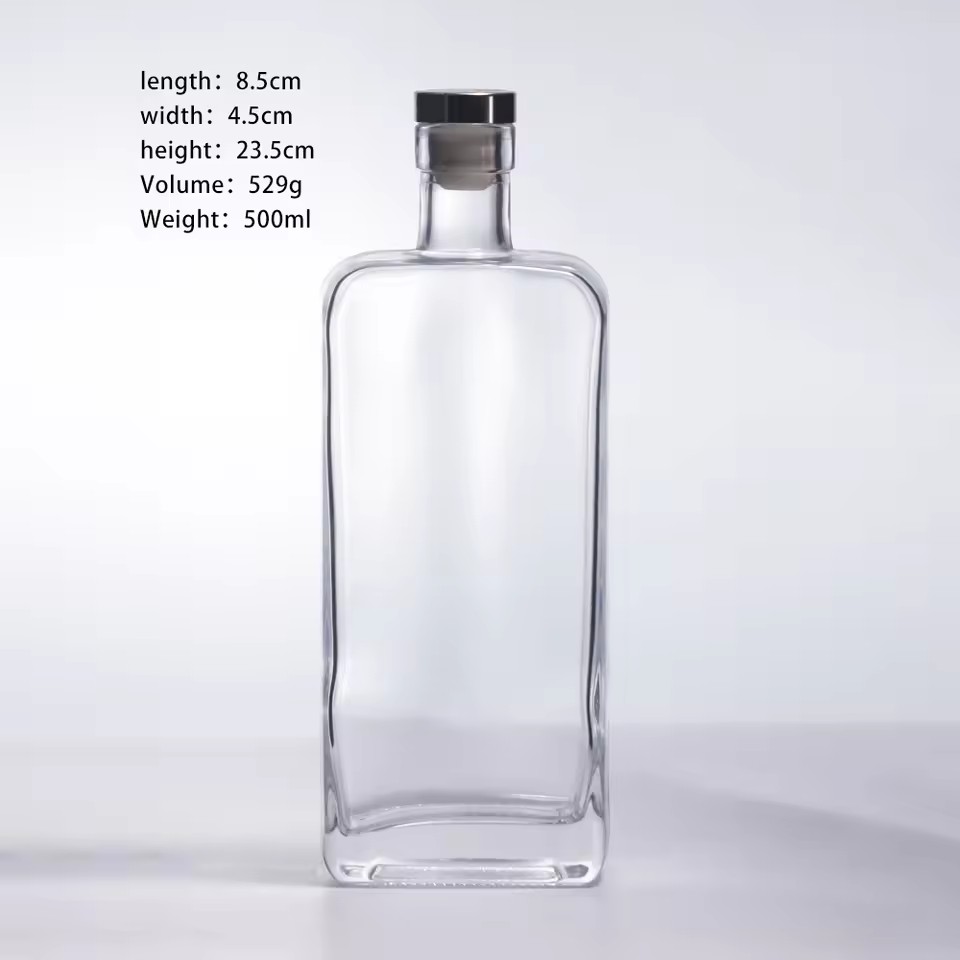 | Product: | Premium Fashion 500ml Square Simple Transparent Custom Glass Wine Bottle Cork Seal Screen Printing for Brandy Energy Drink Rum |