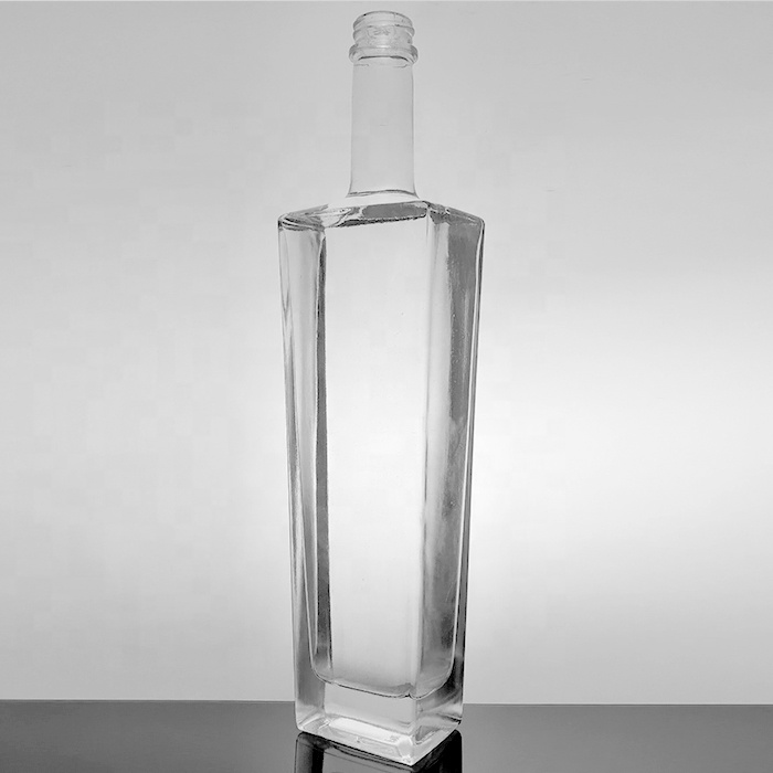 Rectangular 70cl Rum Whiskey Container Cork Top Black Lid Vodka Spirits White Extra Flint 700ml Liquor Tall Square Glass Bottle |