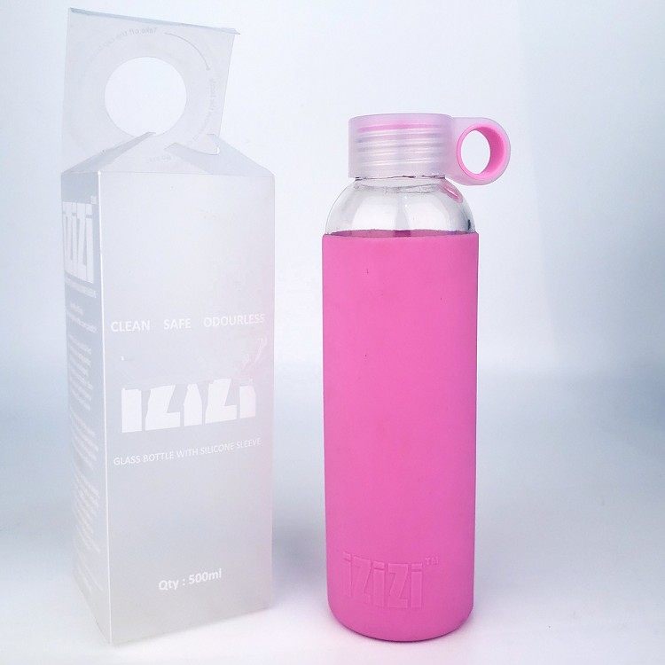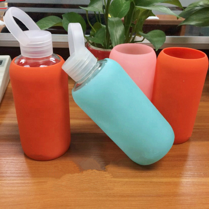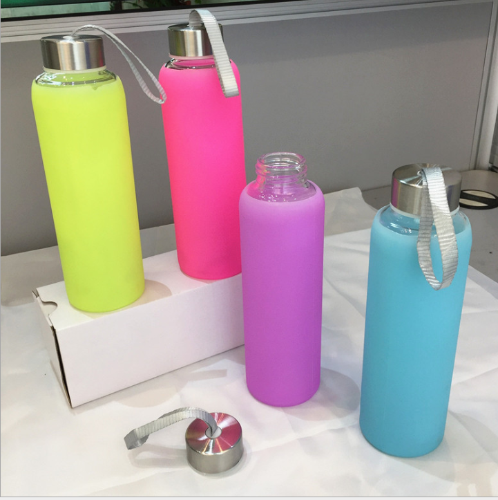 Recycled Sport Glass water bottle With Colorful Silicone Sleeve |