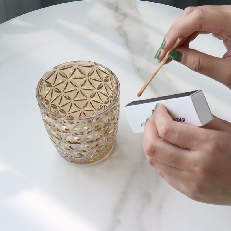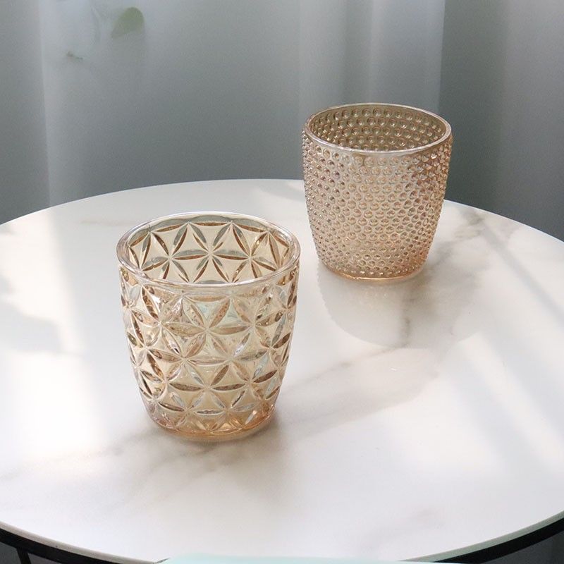 | Product: | Set of three pcs 300ml empty glass candle holder with different relief patterns |